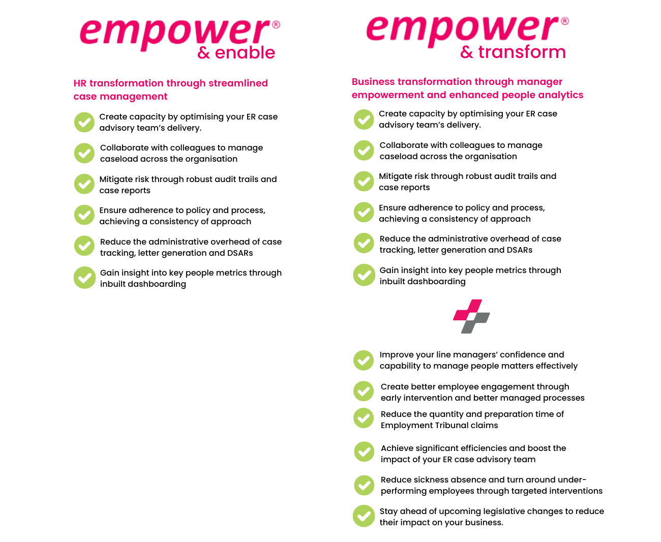 For organisations looking to enhance their current processes, empower® provides tools that streamline operations and improve HR efficiency. For those ready to take employee relations to the next level, empower® transforms your operating model by enabling line managers to self-serve with confidence, ensuring consistency, compliance and efficiency across your organisation.