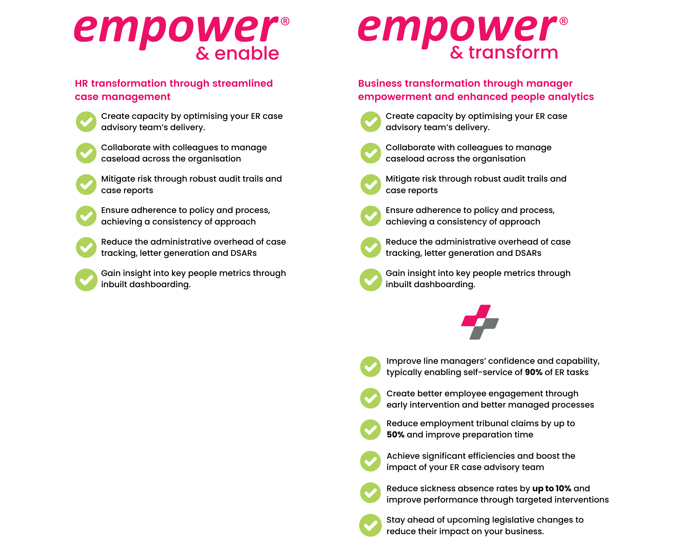 For organisations looking to enhance their current processes, empower® provides tools that streamline operations and improve HR efficiency. For those ready to take employee relations to the next level, empower® transforms your operating model by enabling line managers to self-serve people matters with confidence, ensuring consistency, compliance and efficiency across your organisation.