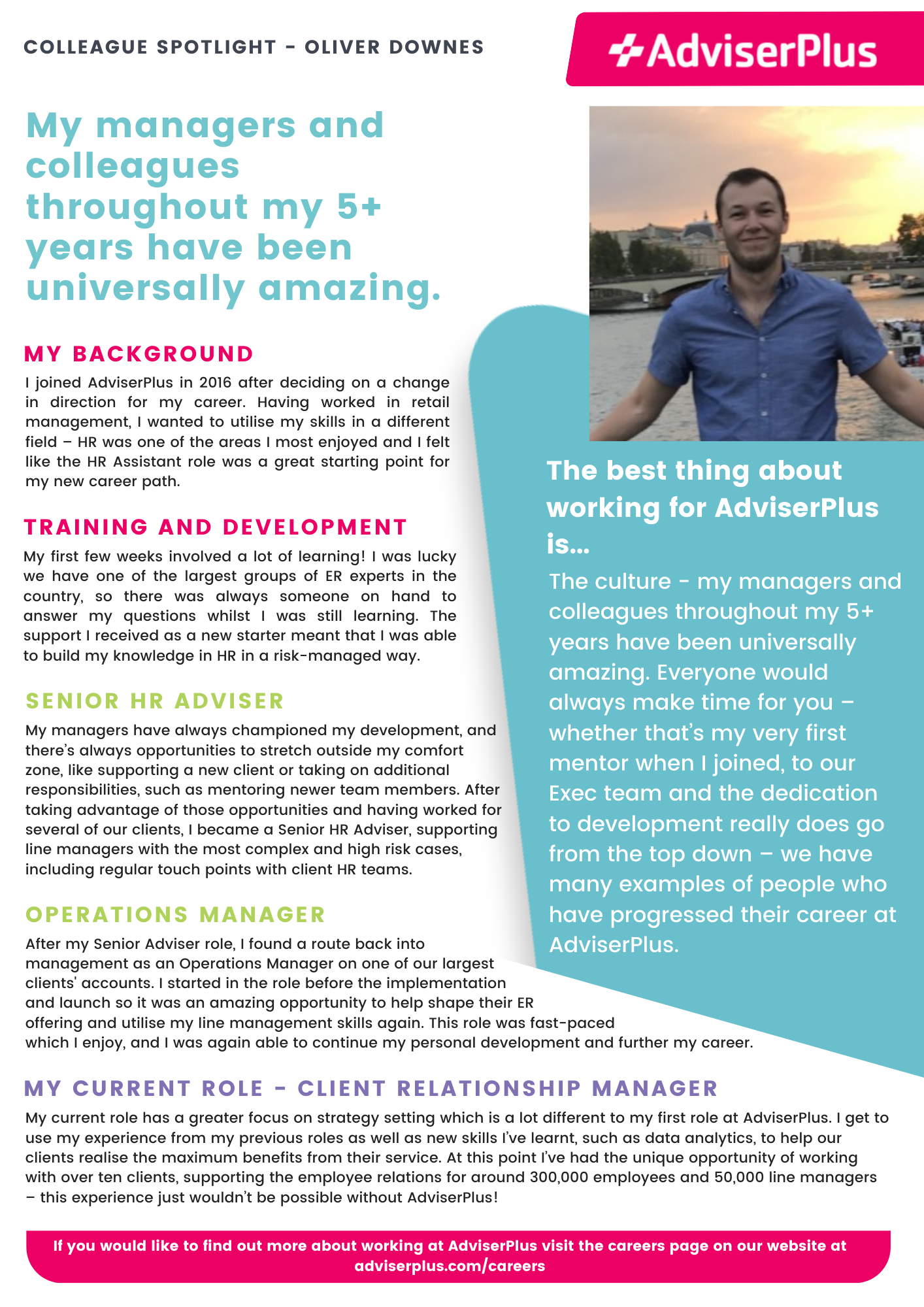 There are so many great career opportunities at AdviserPlus and, as Oliver’s story proves, we’re really committed to giving our colleagues the opportunity to develop themselves. This commitment is based on the belief that the performance of our business is directly linked to the skills, development and performance of our people.